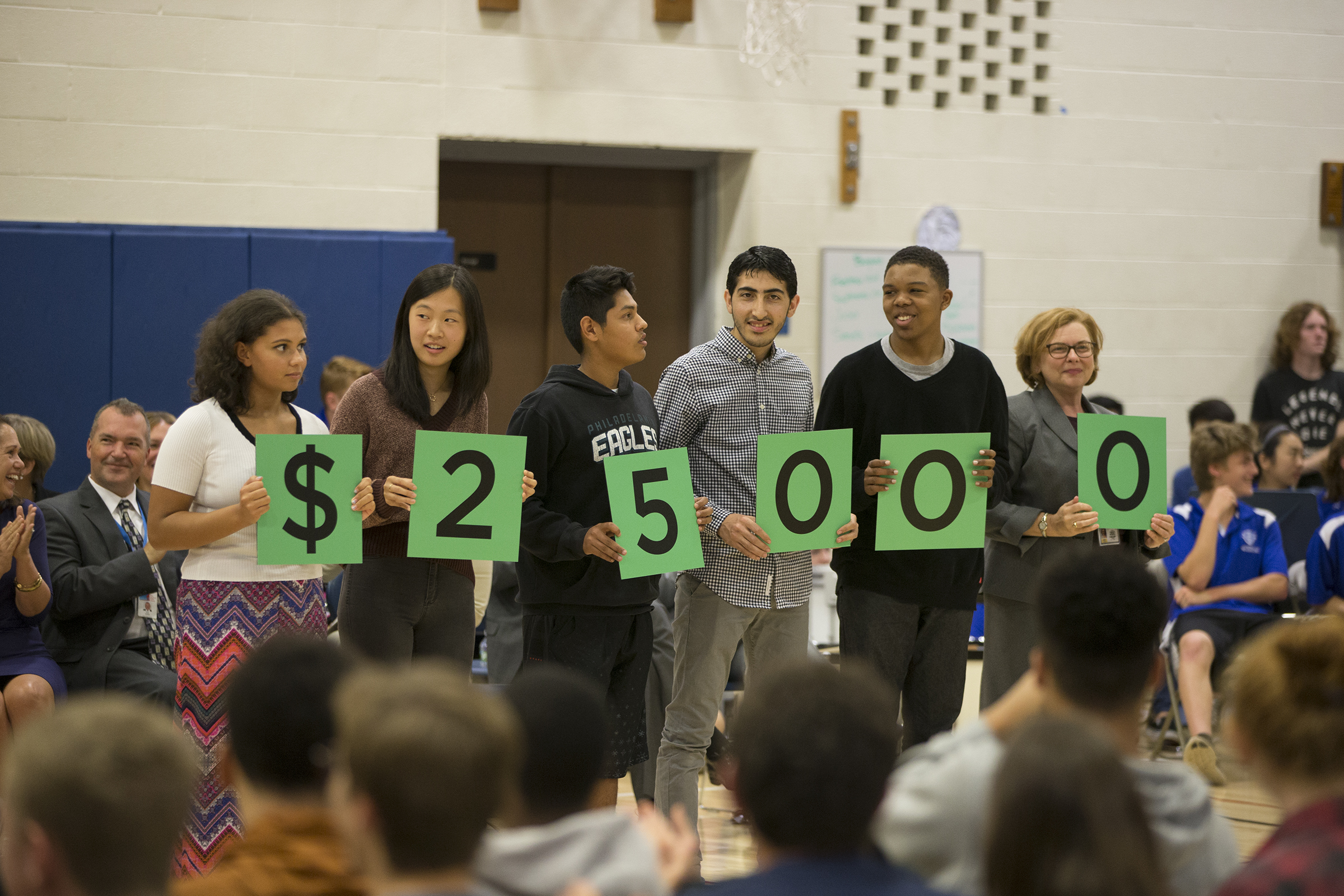 Hall High School | West Hartford, CT | Oct 24, 2017The teacher who is about to receive Connecticut's 2017-18 Milken Educator Award also gets a cash prize. How much? Students hold up cards representing the amount of the Award, one digit at a time. When Connecticut State Education Commissioner Dr. Dianna R. Wentzell holds up the final zero, the crowd starts to buzz: $25,000! Which teacher is it?