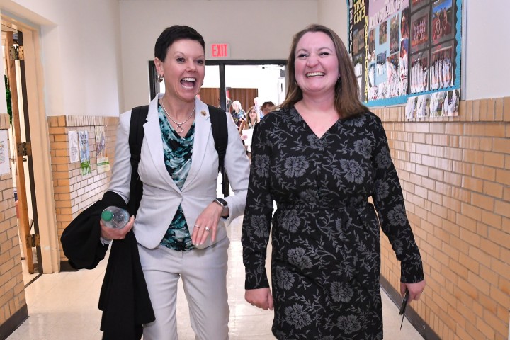 Shawsville Middle School | Shawsville , VA | Mar 07, 2025Anna Drew gives Stephanie Bishop, vice president of the Milken Educator Awards, a tour of Shawsville Middle School.