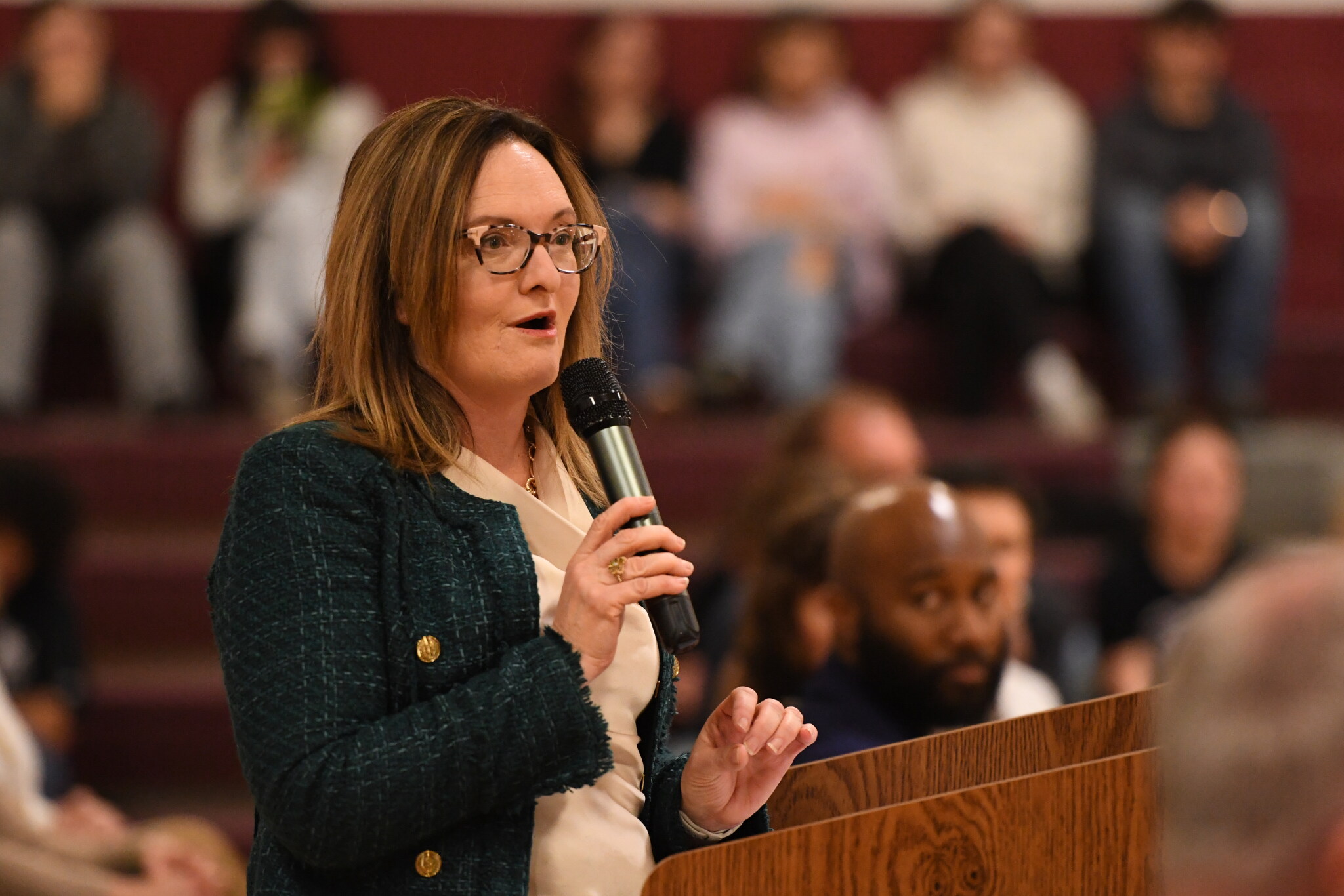 Shawsville Middle School | Shawsville , VA | Mar 07, 2025Virginia Superintendent of Public Instruction Dr. Lisa Coons greets Shawsville Middle School students and staff. Then, pivoting, she introduces a special guest who's come all the way from California.