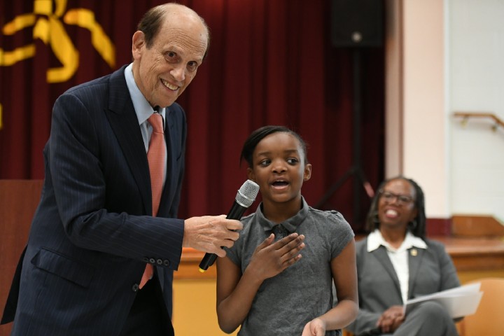 Noyes Elementary School | Washington, DC | Mar 06, 2025Mike Milken, president and co-founder of the Milken Family Foundation, tells the assembly that teachers have the most important job: preparing young minds. Every year the Milken Family foundation honors outstanding educators across the country and this year, one of those educators is right here at Noyes Elementary School! Mike Milken calls up a student to explain the details of this prestigious Award.