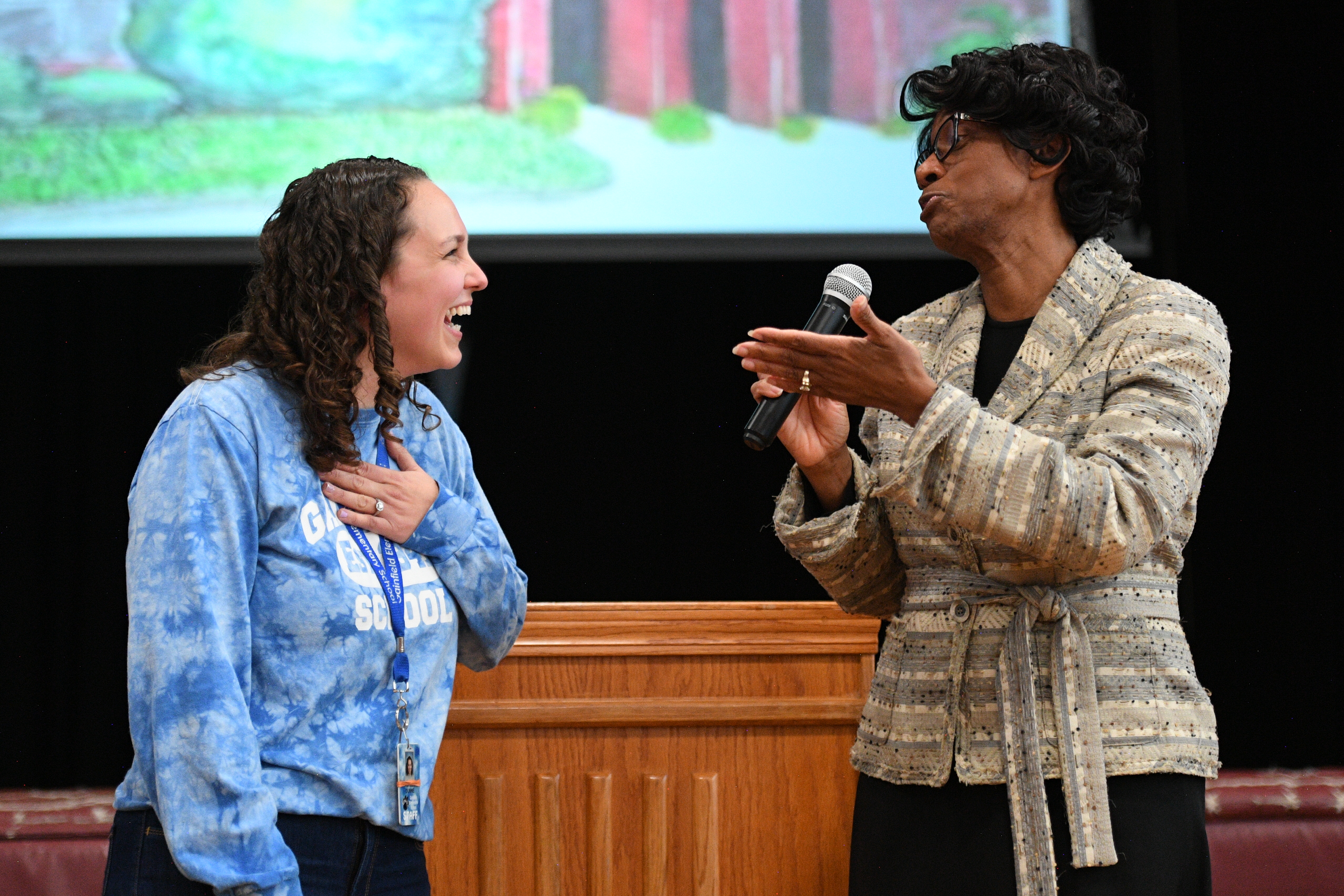 Gainfield Elementary School | Southbury, CT | Oct 18, 2023Connecticut Education Commissioner Charlene M. Russell-Tucker congratulates Ashley Dunne on her Milken Award recognition. “Ashley Dunne has proven to be the heartbeat of her school community, supporting numerous initiatives, mentoring, and continuously striving for professional growth," Commissioner Russell-Tucker said. "I congratulate Ashley on receiving this award and thank her for inspiring her students to become musicians through creativity, performance, and a deep love for music."
