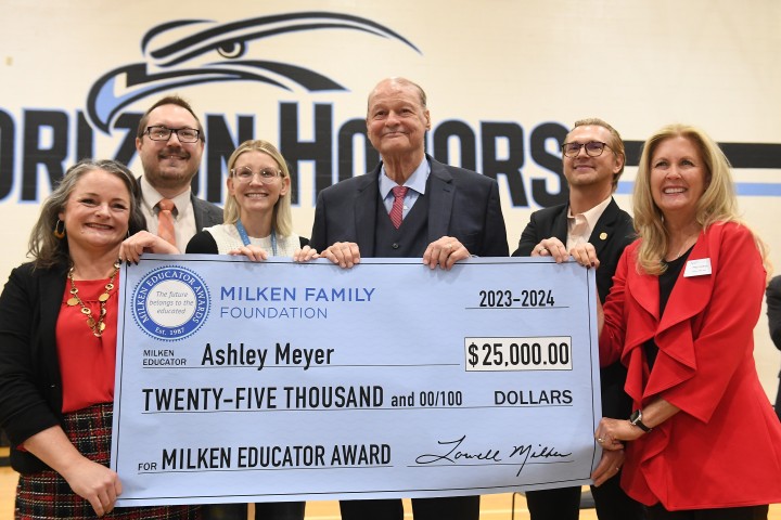 Horizon Honors Elementary School | Phoenix, AZ | Dec 07, 2023Special visitors gather to congratulate Ashley Meyer on her Milken Educator Award.