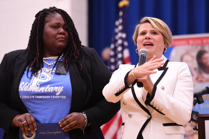 Pearsontown Elementary | Durham, NC | Nov 03, 2023North Carolina Superintendent of Public Instruction Catherine Truitt congratulates Principal Asia Cunningham on her Milken Educator Award.