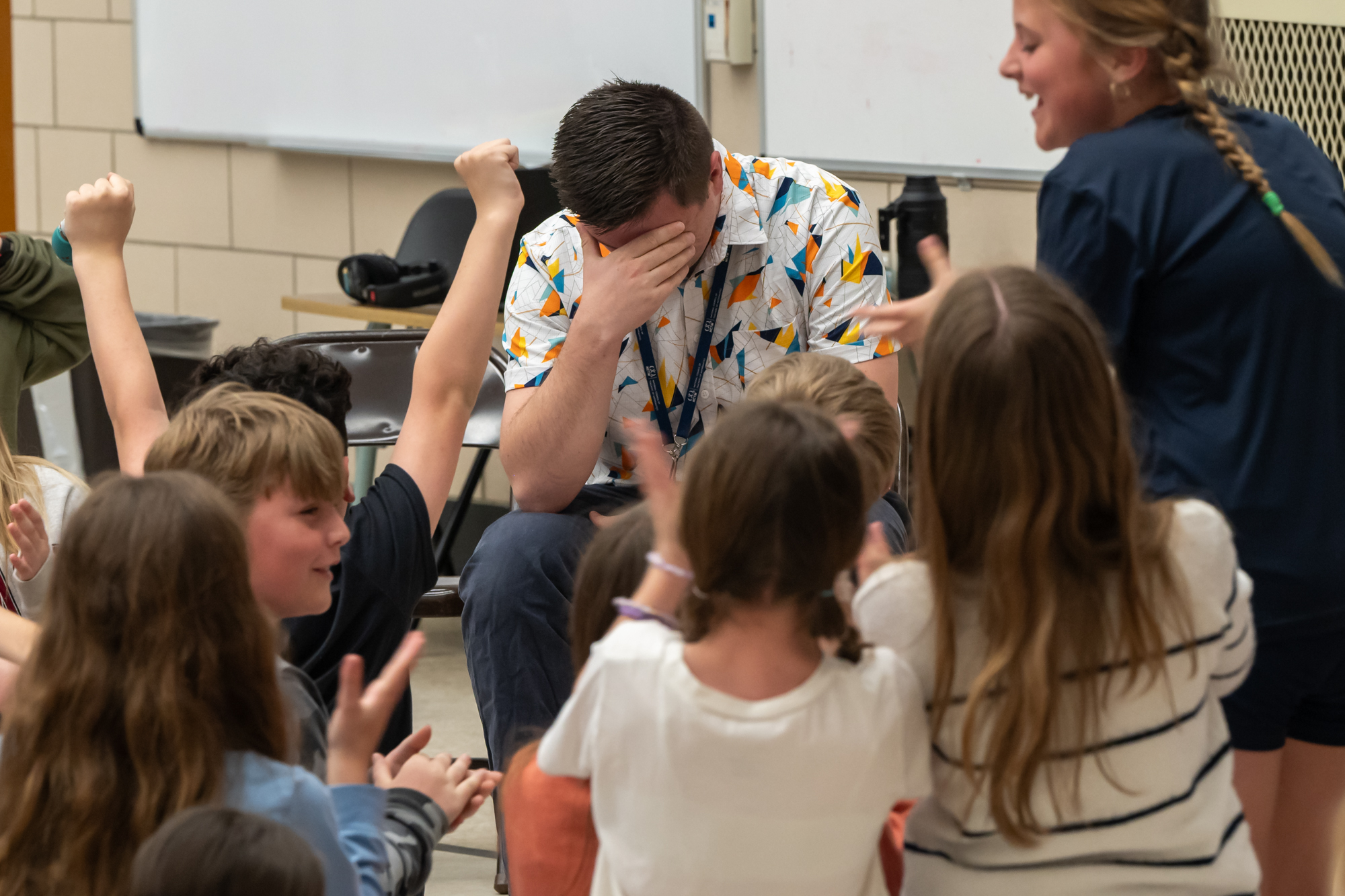 Bodkin Elementary School | Pasadena, MD | Apr 18, 2024Shocked, math teacher Bradley Absher bows his head as he processes what he's just heard: He has won a Milken Educator Award and $25,000! Students begin to chant his name all around him. "ABSHER! ABSHER! ABSHER!"