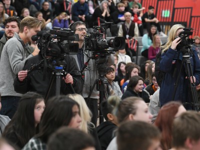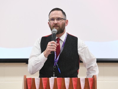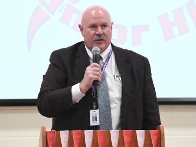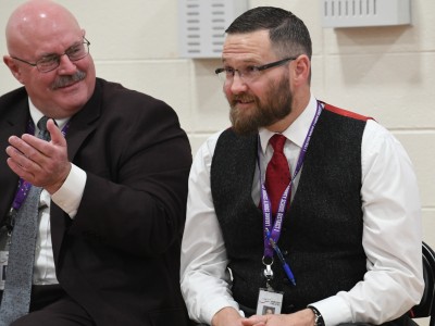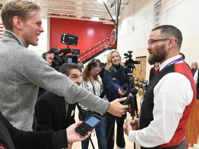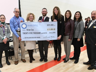 Johnson Junior High School Principal Brian Cox knows Wyoming Superintendent of Public Instruction Jillian Balow is coming to visit ... but he doesn't know the real reason! The schoolwide assembly takes an unexpected turn when Superintendent Balow introduces Greg Gallagher, senior program director for the Milken Family Foundation, who presents the principal with Wyoming's 2019-20 Milken Educator Award and $25,000. Surprise, Principal Cox—you just planned your own party!