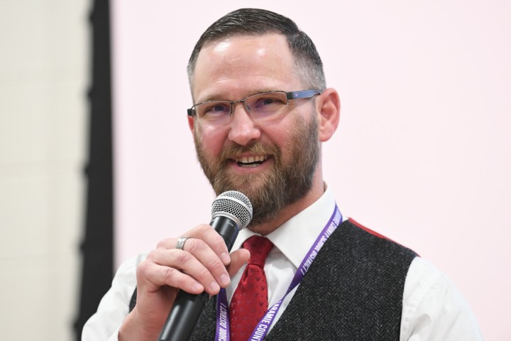 Johnson Junior High School | Cheyenne, WY | Dec 09, 2019Johnson Junior High School Principal Brian Cox is at the microphone again, but this time it's to share some thoughts about becoming Wyoming's 2019-20 Milken Educator. Principal Cox leads a staff of 100, challenging Johnson’s educators daily to consider what they can do to make a positive impact on the seventh- and eighth-graders they teach.