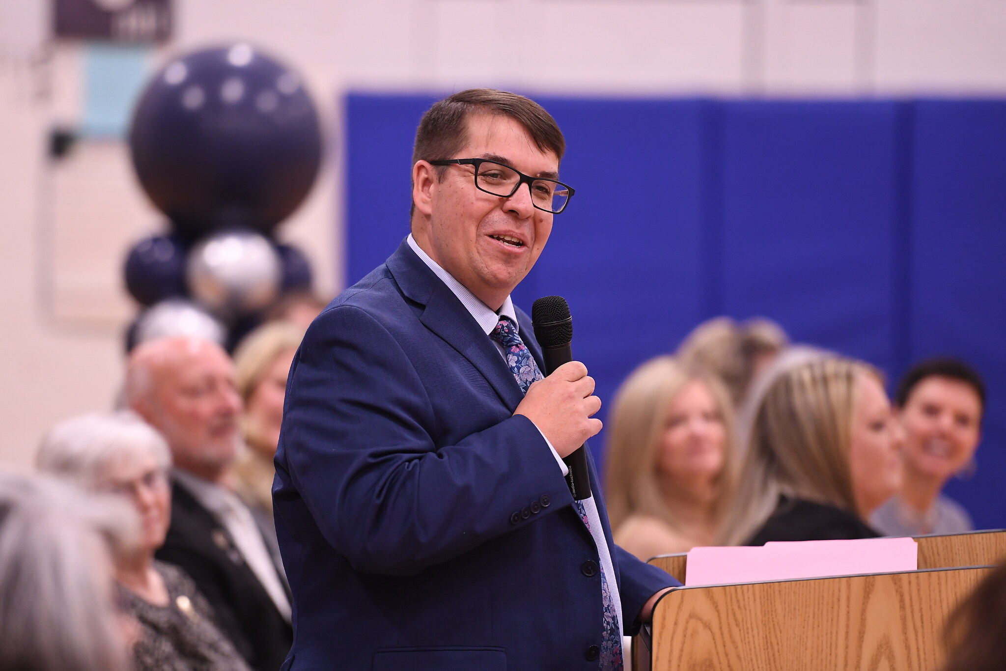 Mullens Elementary School | Mullens, WV | Nov 18, 2025Wyoming County Schools Superintendent Johnathan Henry introduces the many dignitaries visiting for the day's special event.