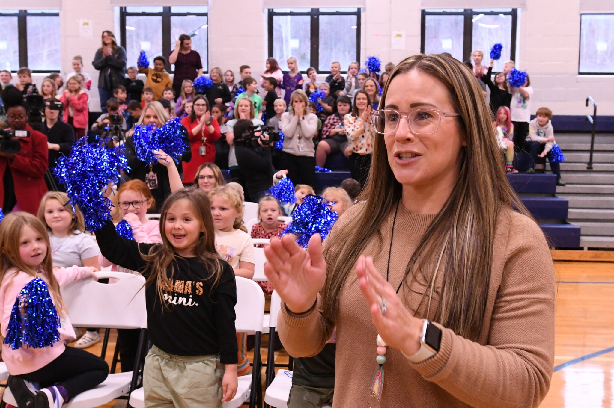 Mullens Elementary School | Mullens, WV | Nov 18, 2025Brooke Bailey makes her way to the front of the gymnasium to accept her Award as students, colleagues, dignitaries and media cheer her on.
