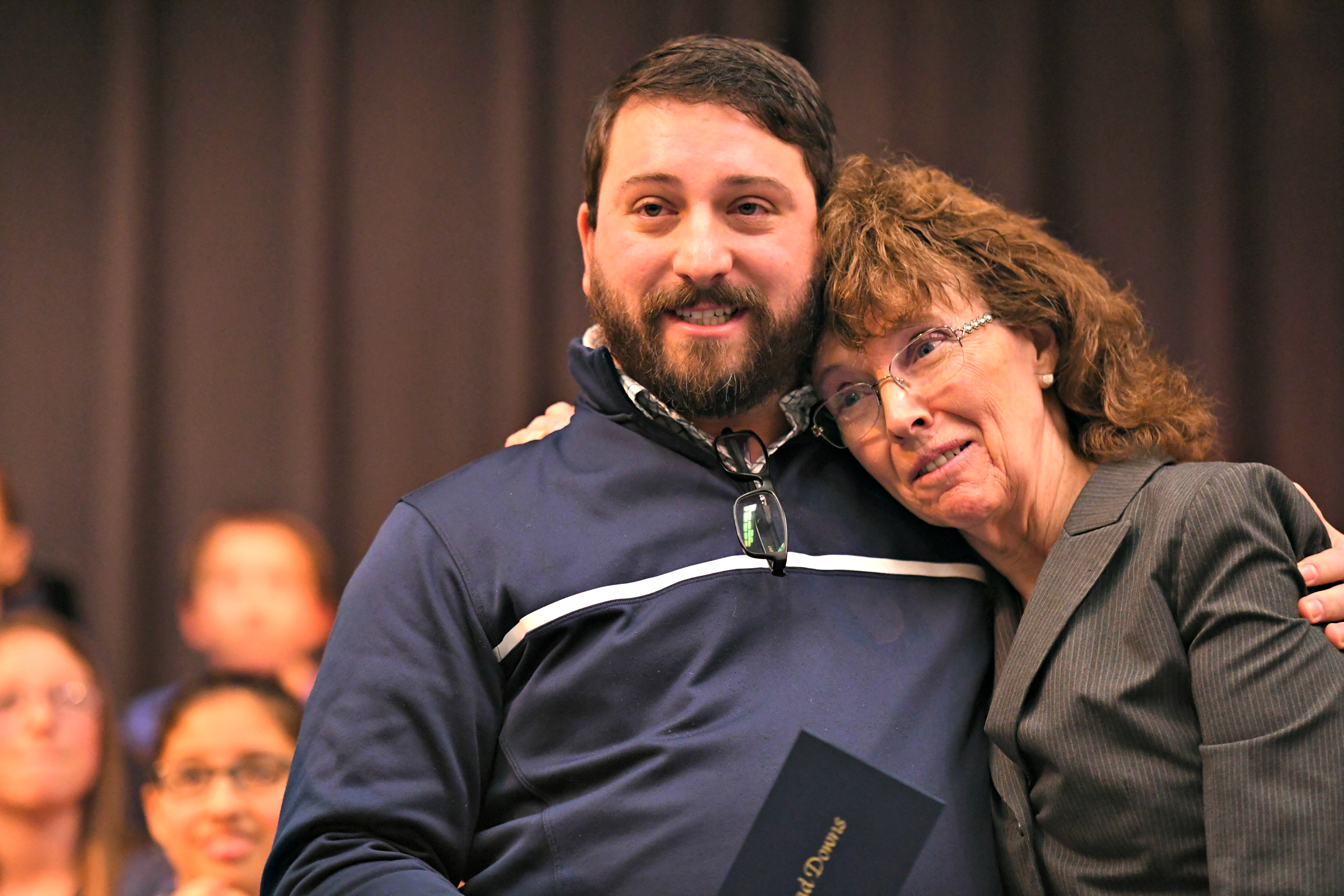 Ann Arbor Open School | Ann Arbor, Michigan | Dec 12, 2018Dr. Jane Foley, senior vice president of the Milken Educator Awards, shares an emotional moment with recipient Chad Downs as the applause and cheers continue. Foley knows what this moment feels like: Not only does she remember the moment she herself won the Award in 1994, but she has presented hundreds of Awards to equally shocked teachers and principals around the country.