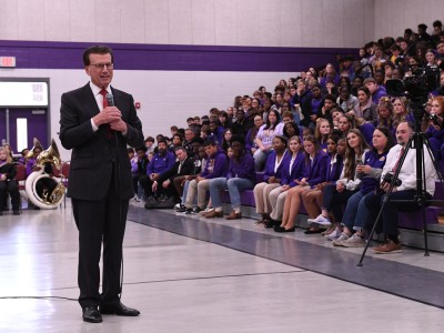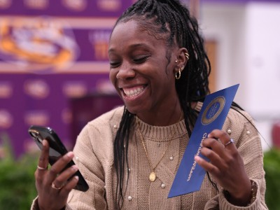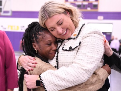 Logansport High School | Logansport, LA | Dec 05, 2024Milken Educator Award veteran Lindsey Parker (LA '14), also a Logansport High School graduate and good friend of Wilson, celebrates the newly minted educator with a hug.