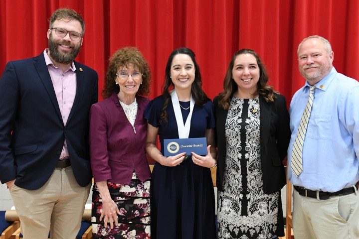 From left, Kevin Dailey (KY '21); Dr. Jane Foley (IN '94), senior vice president of the Milken Educator Awards; Charlotte Buskill (KY '22); Laura Cole (KY '19); and Ryan Williams (KY '12), who was Owensboro Public Schools' first Milken Award recipient.