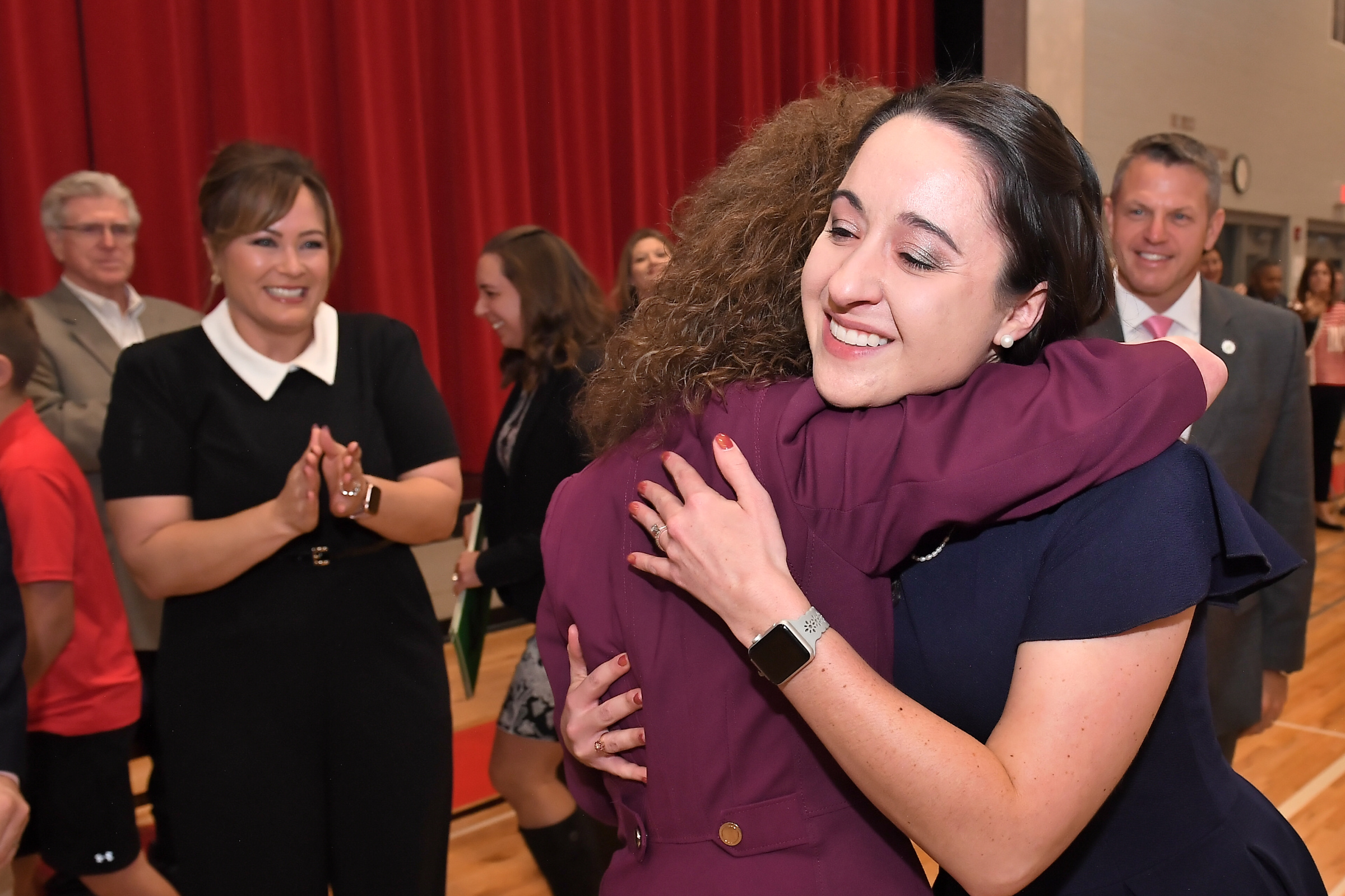 Newton Parrish Elementary | Owensboro, KY | Nov 10, 2022With Kentucky Lieutenant Governor Jacqueline Coleman and Commissioner of Education Dr. Jason E. Glass looking on, third grade teacher Charlotte Buskill gets a huge hug from Milken Educator Awards Senior Vice President Dr. Jane Foley as she comes up to accept Kentucky's 2022 Milken Educator Award.