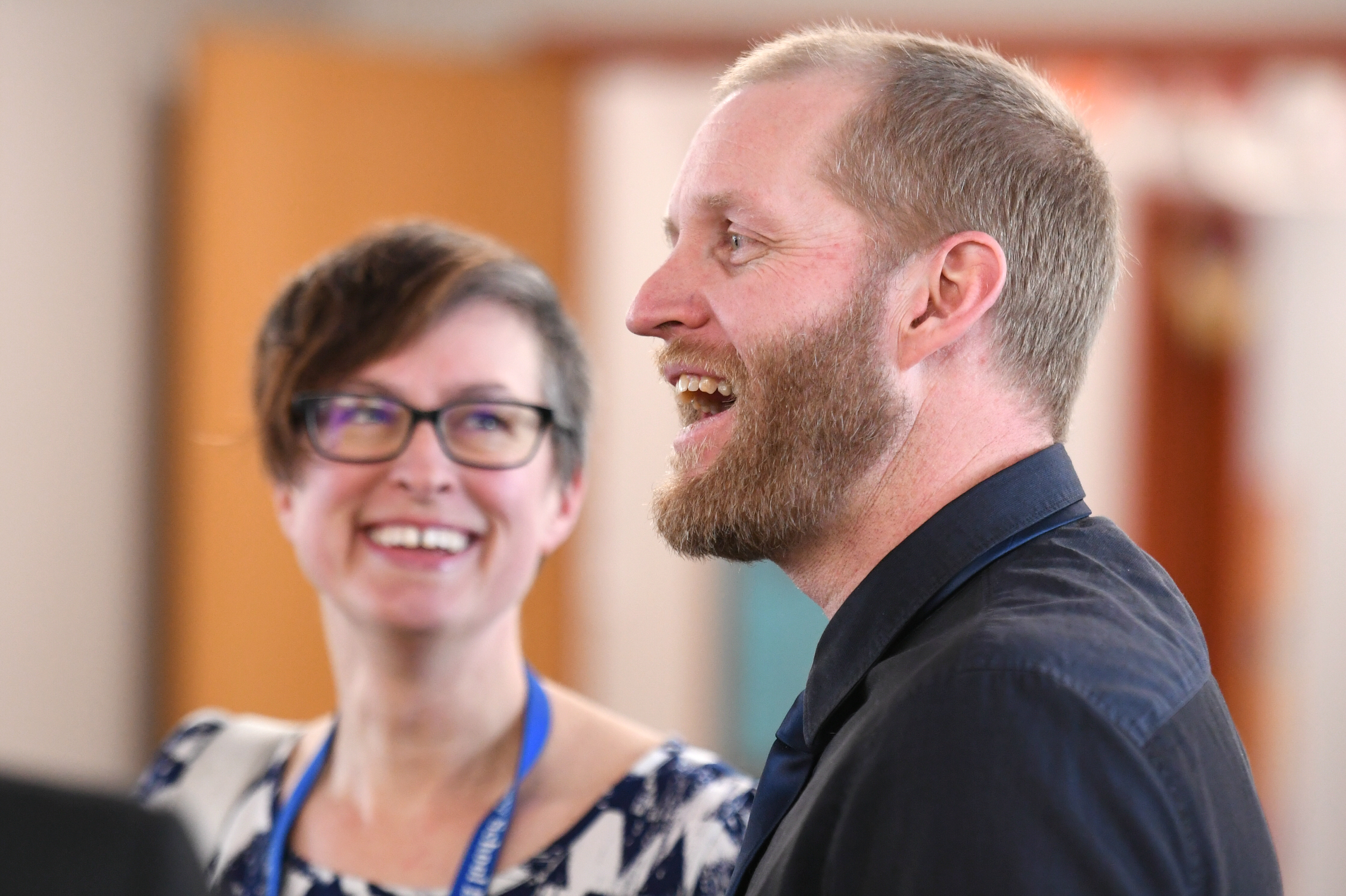 Munger Mountain Elementary School | Jackson, WY | Jan 04, 2019Chris Bessonette explains the day's huge surprise to his wife Joanna Cooke, a substitute teacher at Munger Mountain Elementary.