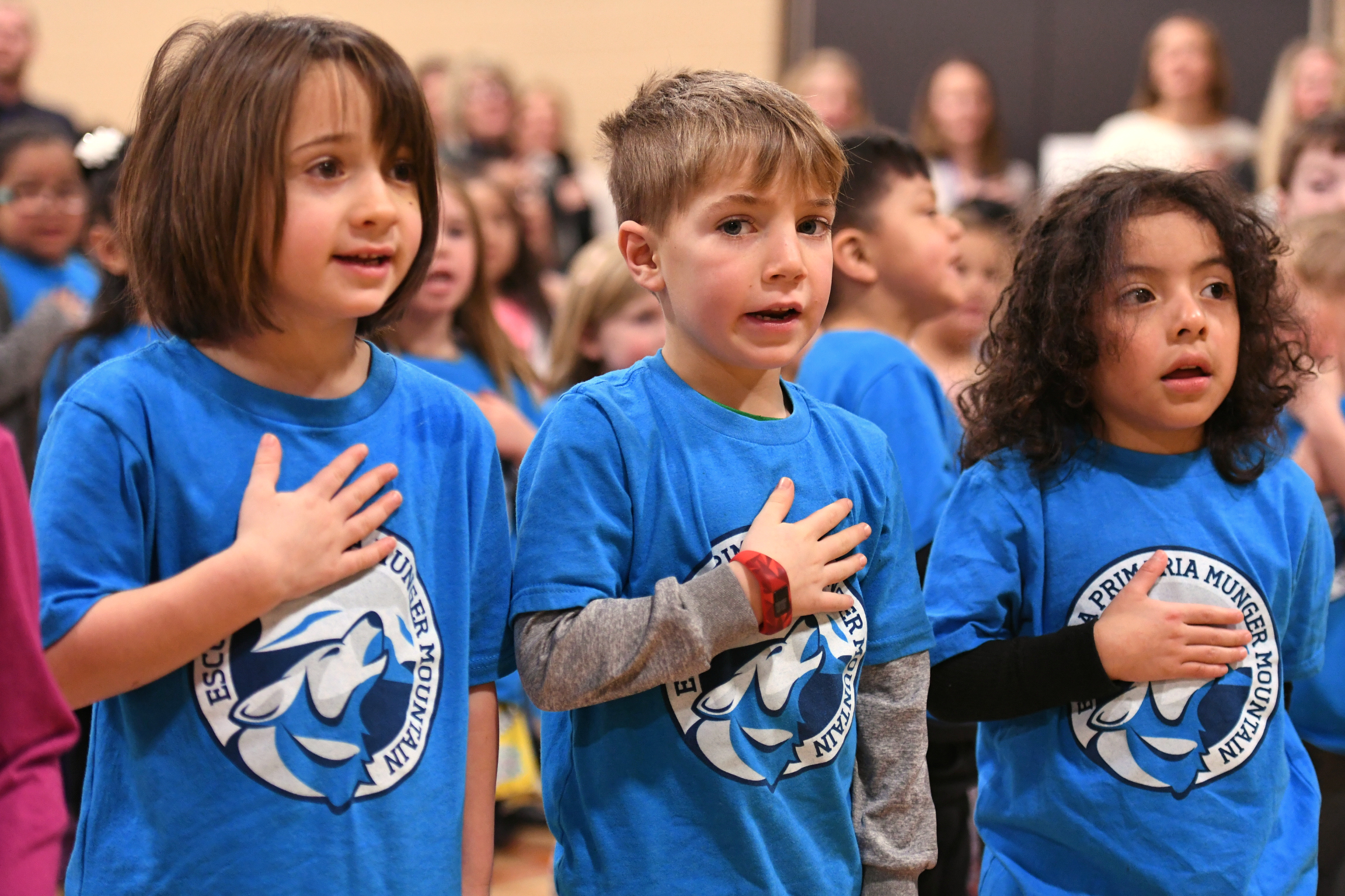 Munger Mountain Elementary School | Jackson, WY | Jan 04, 2019Students recite the Pledge of Allegiance as the program gets underway.