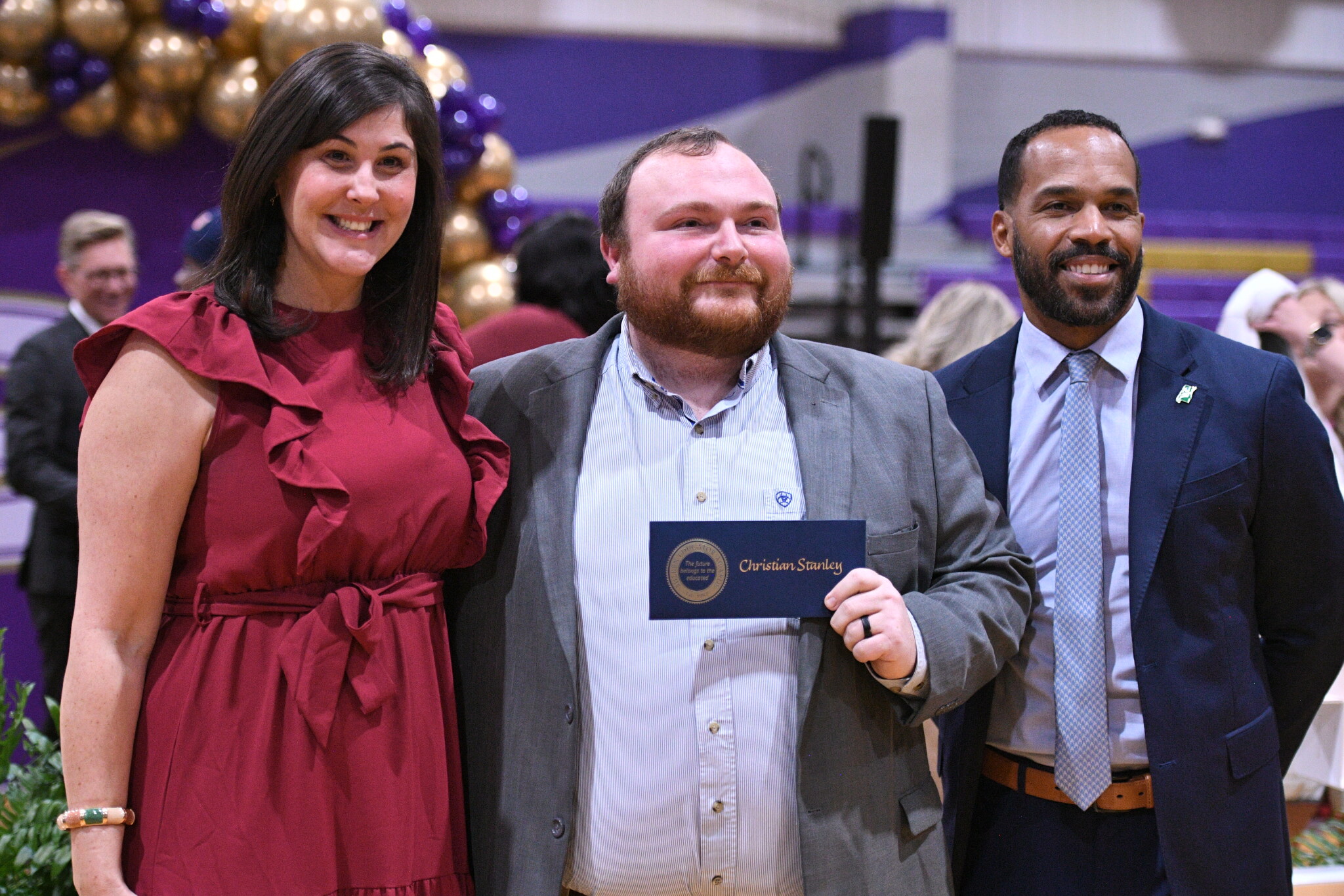 Goshen High School | Goshen, AL | Dec 10, 2025Christian Stanley is celebrated by Katie Collins, 2025-26 Alabama Teacher of the Year from Bluff Park Elementary School, and Aubrey Bennett, 2025-26 Alternate Alabama Teacher of the Year from George Washington Carver High School.