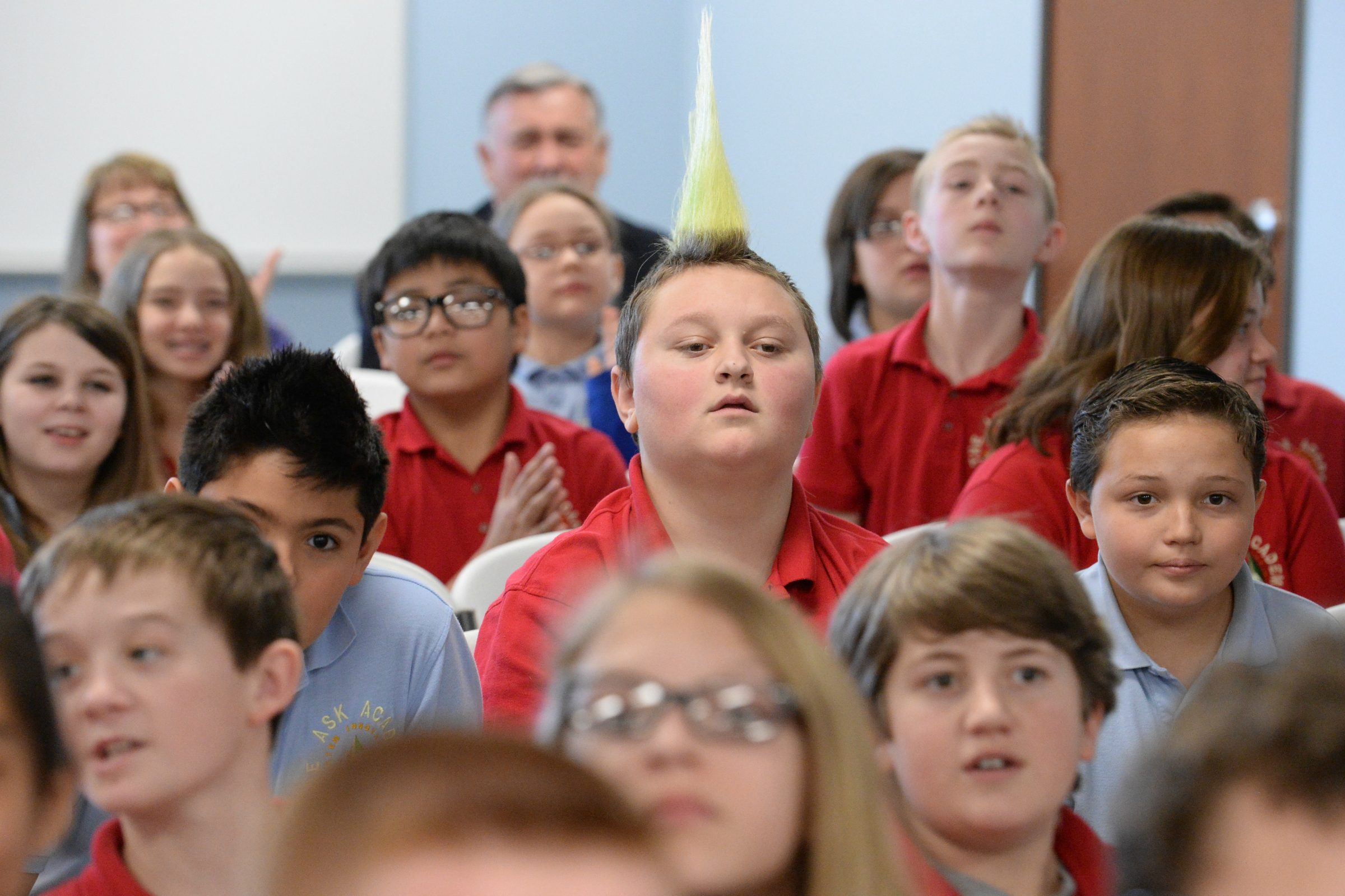 The ASK Academy | Rio Rancho, NM | Feb 24, 2016ASK Academy students listen intently as Dr. Jane Foley, senior vice president of the Milken Educator Awards, explains what the Award is all about.