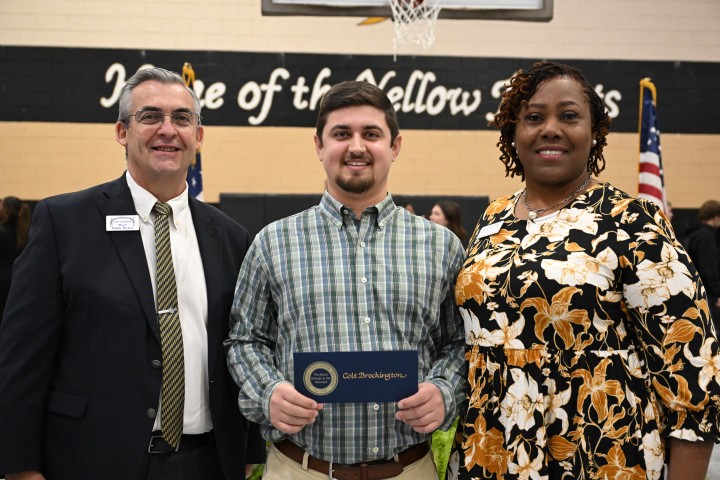 Wayne County High School | Jesup, GA | Jan 19, 2024Jesup Mayor Ralph Hickox and Jesup City Council Member Dr. Pamela Shuman add to the chorus of congratulations for hometown hero Colt Brockington after his Milken Educator Award assembly.