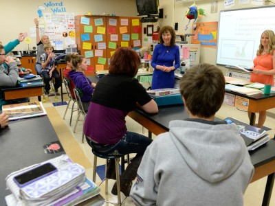 Beadle Middle School | Omaha, NE | Oct 21, 2015Nebraska State Senator Rick Kolowski joins the chorus of congratulations for science teacher Courtney Matulka at her Milken Educator Award ceremony. From left, Dr. Jane Foley, Milken Educator Awards Senior Vice President; Dr. Deborah Frison, Nebraska Department of Education Deputy Commissioner of School Improvement; Courtney Matulka (NE '15); Amanda McGill, District Director for U.S. Congressman Brad Ashford; Senator Kolowski; and Nebraska Governor Pete Ricketts.