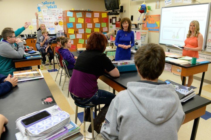 Beadle Middle School | Omaha, NE | Oct 21, 2015Courtney Matulka takes Dr. Jane Foley, Milken Educator Awards Senior Vice President, back to her science classroom to meet with students. Many say they didn't like science until landing in Matulka's class. Matulka has participated in the KICKS2 Physics Institute's seminars for the last three years, as well as in the Metropolitan Omaha Educational Consortium's Mentor Project. She presented at the 2013 Nebraska Association of Teachers for Science Conference and represented her school in state-level discussions about standardized testing for science (NeSA-S).
