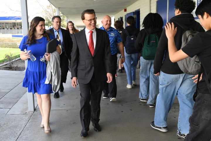 Alta Loma High School | Alta Loma, CA | Feb 18, 2025Danyel Smith and Milken Educator Awards Founder Lowell Milken walk back to Smith's classroom at Alta Loma High School.