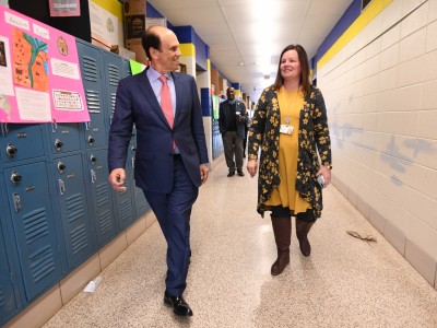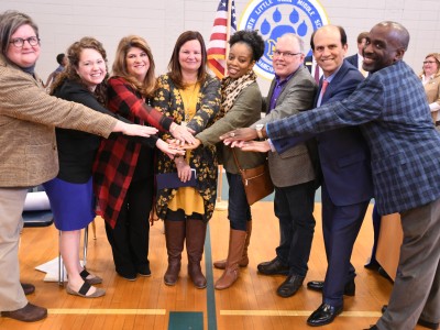 North Little Rock Middle School | North Little Rock, AR | Jan 25, 2018Mike Milken, co-founder of the Milken Family Foundation, talks through a math problem with Dawn McLain's sixth-grade students. McLain encourages hands-on learning, including robotics, design modeling, and interactive activities like tug-of-war.