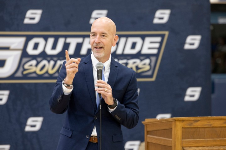 Southside Middle School | Batesville, AR | Jan 09, 2025Arkansas Department of Education Secretary Jacob Oliva says he's excited to visit Southside Middle School because he heard the school has some of the best teachers and students in the nation. He then introduces an important guest with a secret to share about today's assembly.
