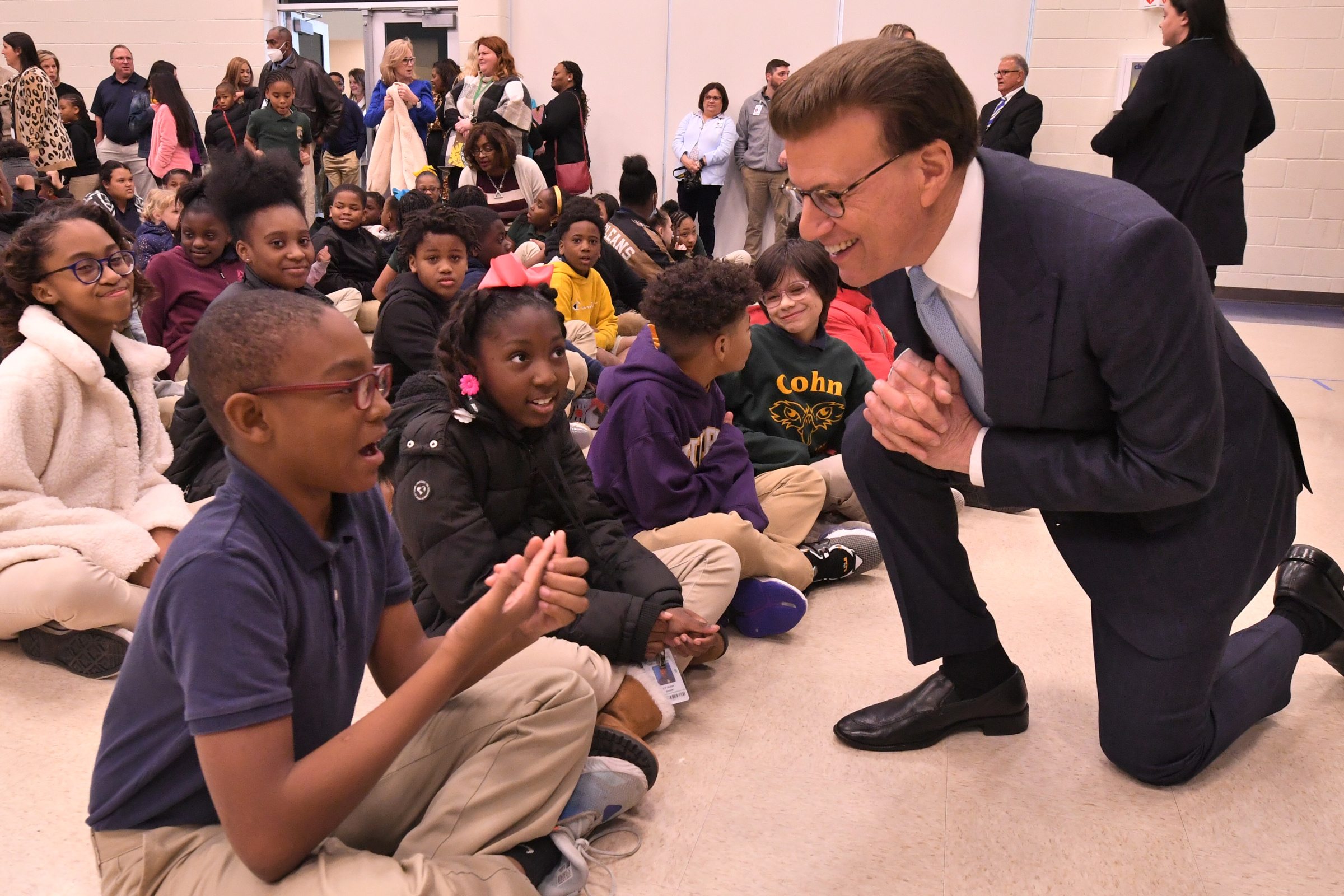 Cohn Elementary School | Port Allen, LA | Jan 24, 2023Before the assembly begins, Milken Educator Awards Founder Lowell Milken asks Cohn Elementary students if they know what's happening today. No one is quite sure, but given the crowd in the gym, everyone know it's going to be something important.