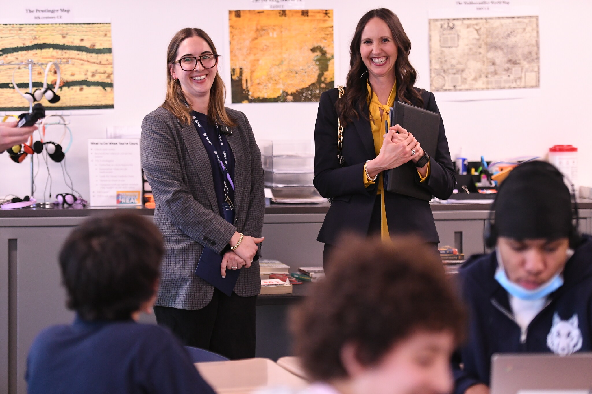 Excel Academy Charter High School | East Boston, MA | Feb 03, 2026Elizabeth Metts gives Milken Educator Awards Vice President Jennifer Fuller a tour of her classroom after being named one of the top educators in the country.