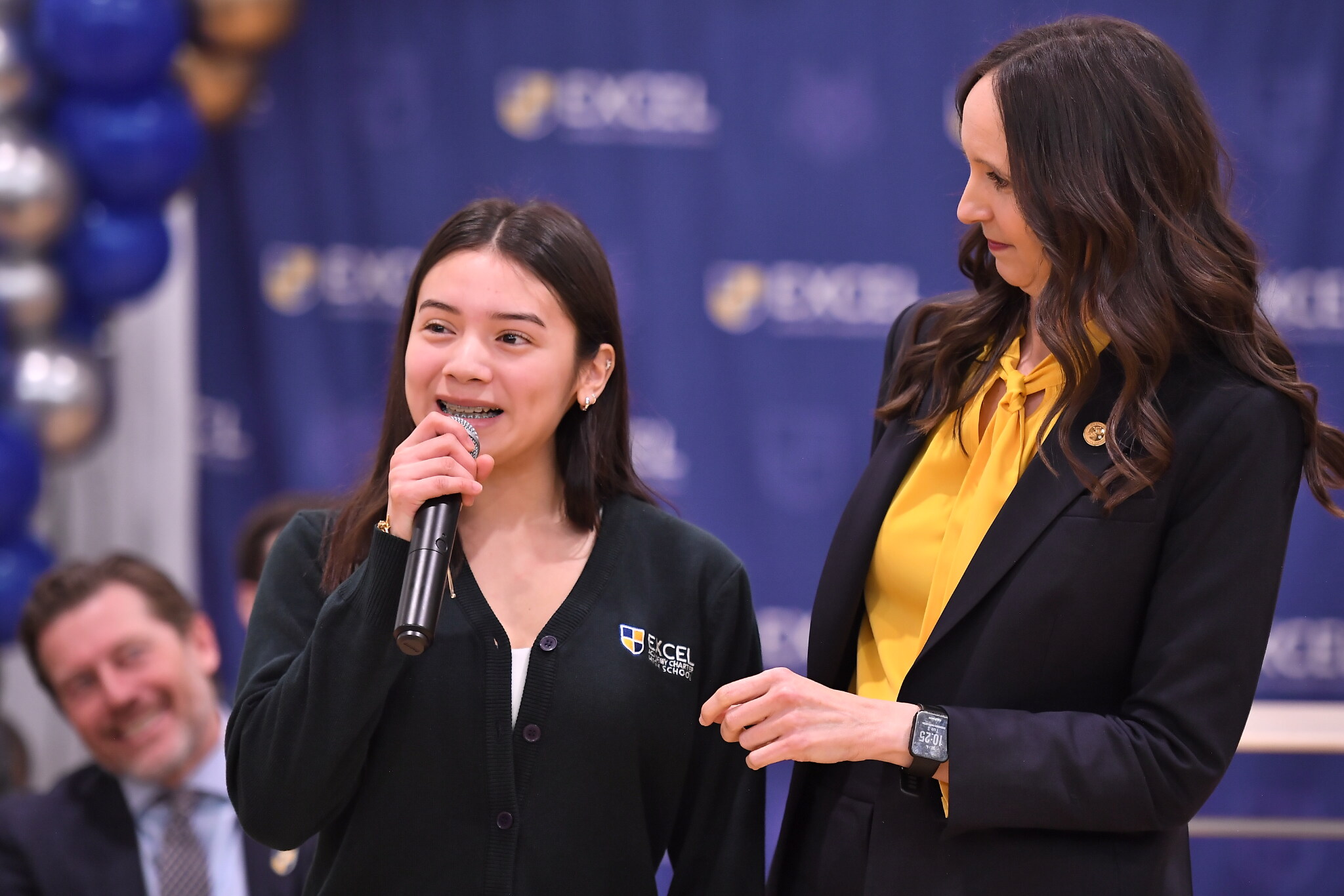 Excel Academy Charter High School | East Boston, MA | Feb 03, 2026Milken Educator Awards Vice President Jennifer Fuller calls on a student to help explain the details of the prestigious Milken Educator Award.