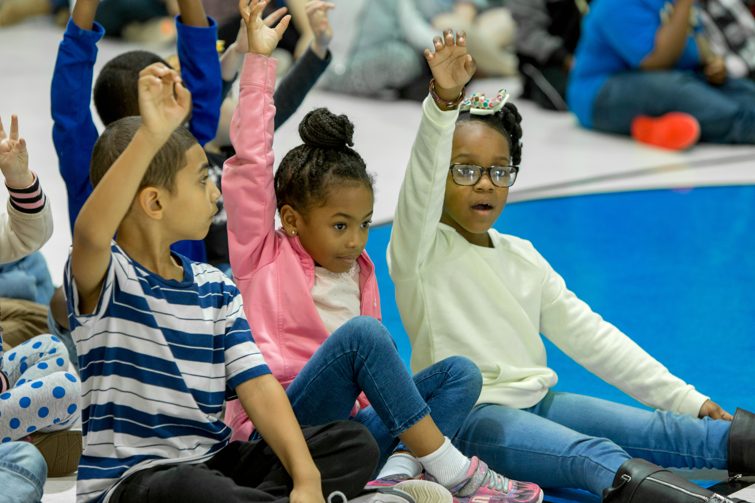 Double Churches Elementary School | Columbus, GA | Nov 30, 2016Hands shoot up as students volunteer to help Dr. Jane Foley, senior vice president of the Milken Educator Awards, with her special presentation.