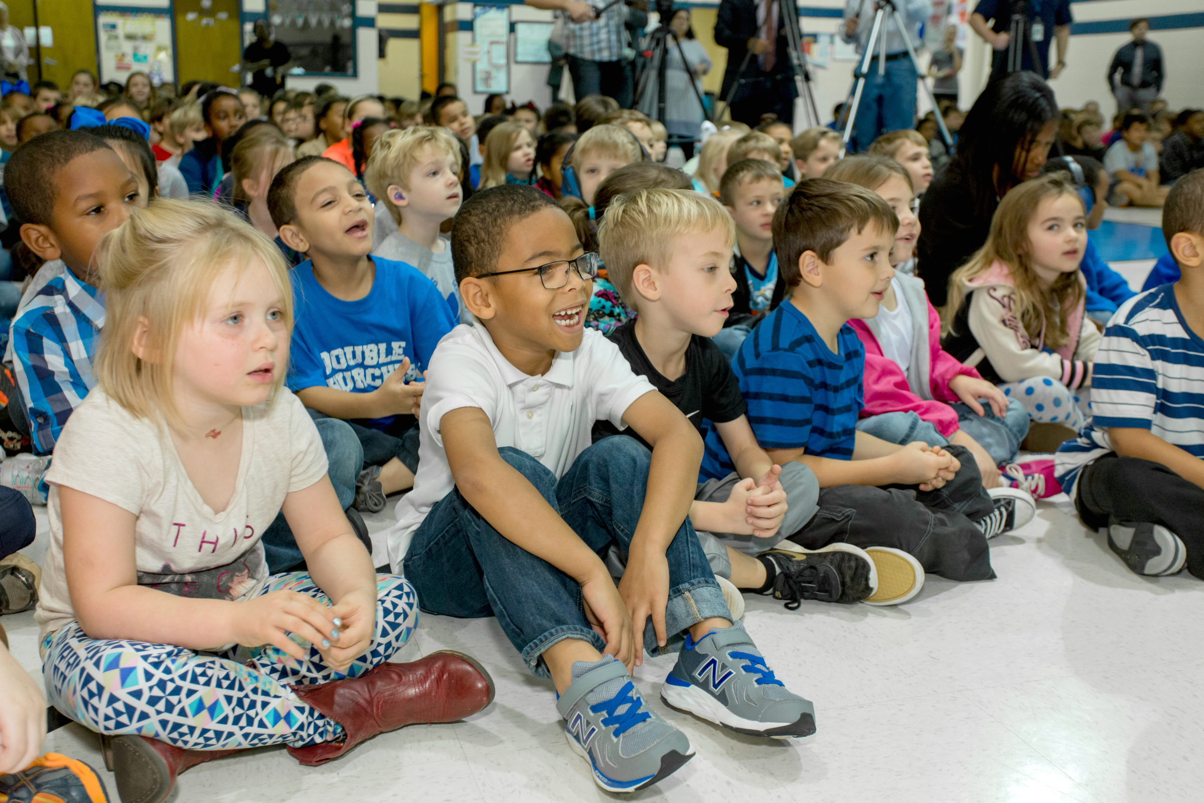 Double Churches Elementary School | Columbus, GA | Nov 30, 2016Students pay close attention as their classmates lend a hand to the day's special guest, Dr. Jane Foley, senior vice president of the Milken Educator Awards.