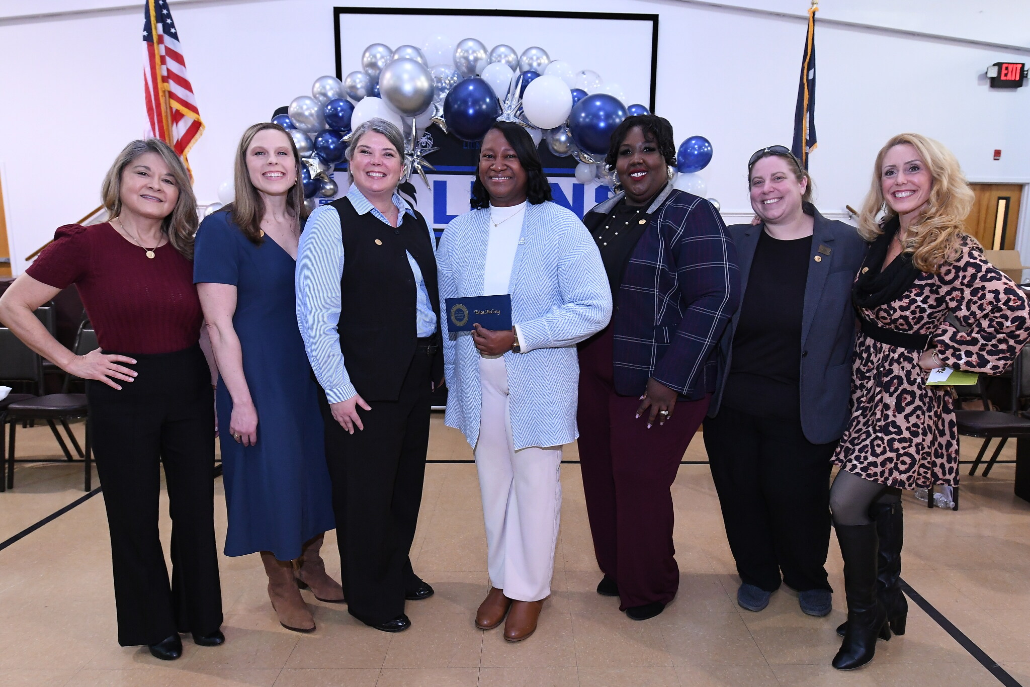 From left: Tracy (Craven) Lee (SC ‘00); Keighley George (SC ‘24); Dr. Shasta Looper (SC ‘12); recipient Erica McCray (SC '25); Amanda Fair-Coles (SC ‘23); Leslie Sullivan (SC ‘19); and Vanessa Torres (SC ‘16).