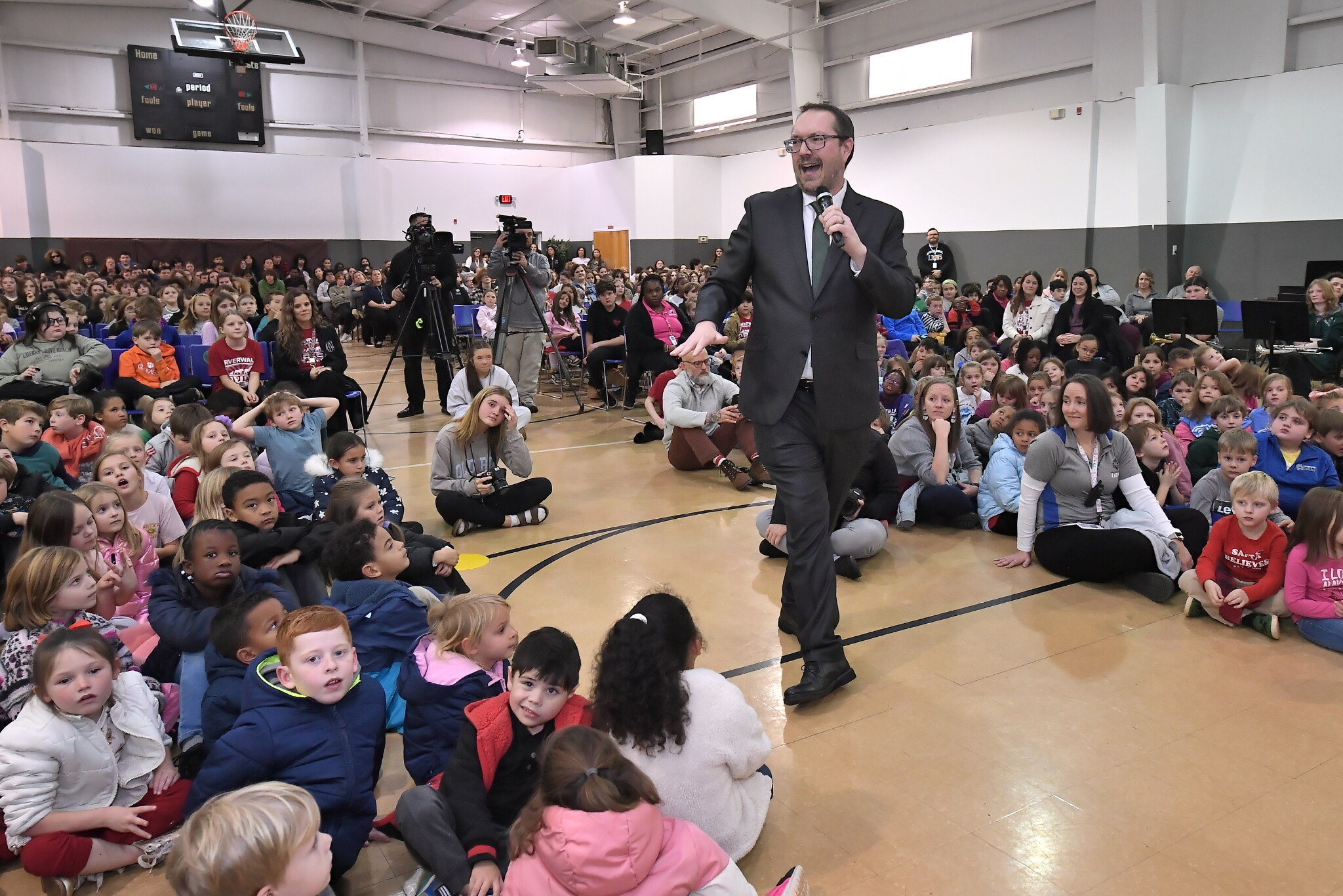 Riverwalk Academy | Rock Hill, SC | Dec 09, 2025National Institute for Excellence in Teaching Chief Executive Officer Dr. Joshua Barnett, representing the Milken Family Foundation, tells the assembly that he has come to Riverwalk Academy on behalf of the Milken Family Foundation to honor one outstanding teacher.