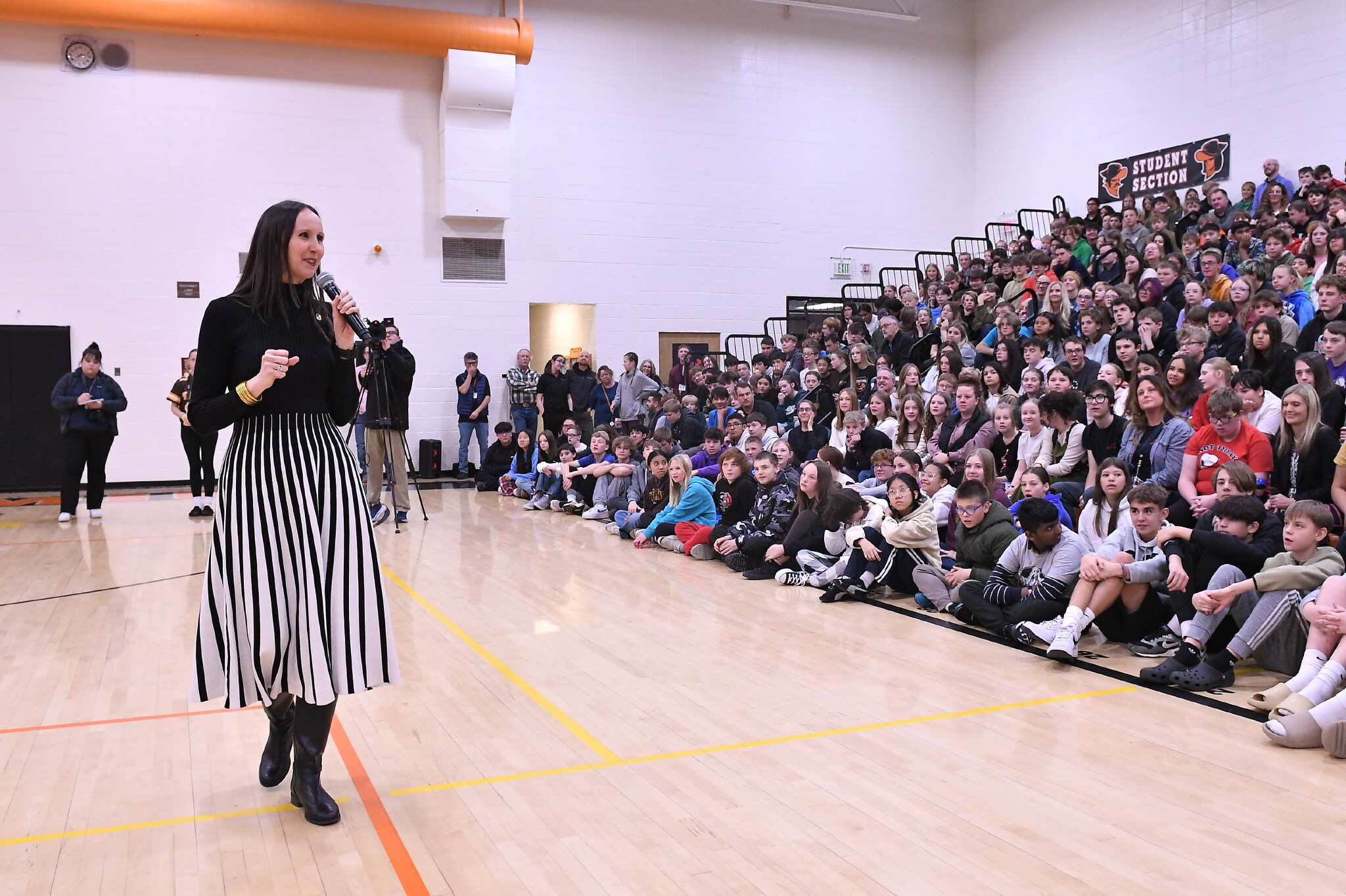 Laramie Middle School | Laramie, WY | Dec 05, 2025Milken Educator Awards Vice President Jennifer Fuller tells the assembly that educators deserve to be recognized for shaping the next generation. She reveals that one of the best educators in the country is about to receive a national honor right here at Laramie Middle School!