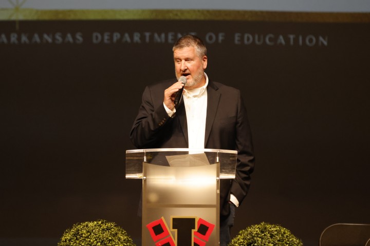 The Academies at Jonesboro High School | Jonesboro, AR | May 11, 2022Everyone is ready to go at The Academies at Jonesboro High School! Principal Dr. Brad Faught kicks off the assembly.