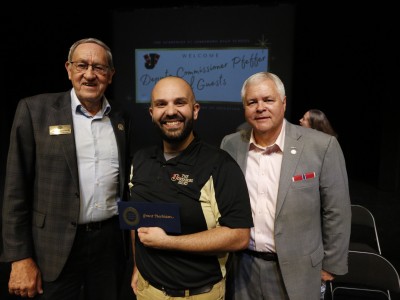 The Academies at Jonesboro High School | Jonesboro, AR | May 11, 2022Everyone is excited for Milken Educator Award recipient Grant Harbison! He talks with Jonesboro Public Schools Superintendent Dr. Kim Wilbanks, a 1991 Arkansas Milken Educator, as fellow veteran Milken Educators Carman McBride (AR '14) and Amy Braswell (AR '02) look on.