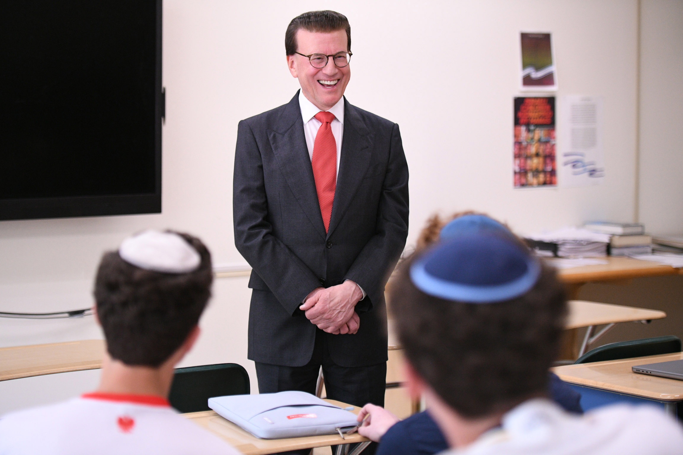 Back in the classroom, Milken Educator Awards Founder Lowell Milken listened to Harry Shontz's students share about what makes him a great teacher. He also learned about their internships, asked them where they were going to school and what they wanted to do.