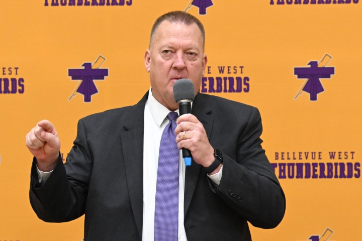 Bellevue West High School | Bellevue, NE | Nov 16, 2023Bellevue Public Schools Superintendent Dr. Jeff Rippe introduces some of the dignitaries visiting for the special assembly.