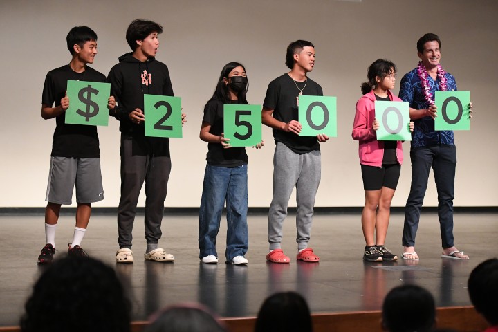 Prince David Kawananakoa Middle School | Honolulu, HI | Apr 08, 2024The educator who is about to win the Milken Educator Award also gets a cash prize ... but how much? One digit at a time, Milken Educator Awards Founder Lowell Milken asks students to hold up cards representing the amount of the Award. When Lowell Milken's nephew Fred Bernstein reveals the final zero, the room starts to buzz. That's $25,000!