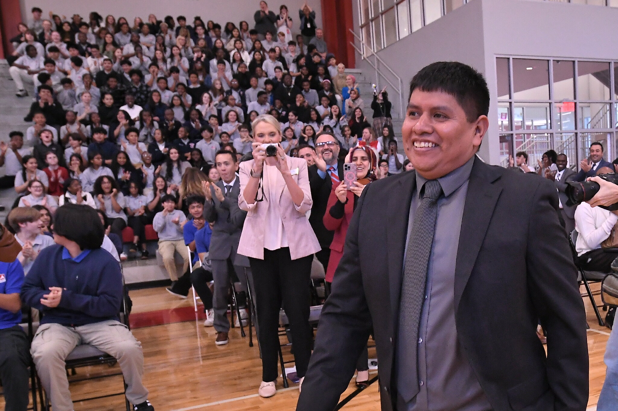 LISA Academy North Middle-High School | North Little Rock, AR | Nov 05, 2025Jaime Garcia makes his way to the front of the gym to accept his Award as teachers, students and dignitaries cheer him on.