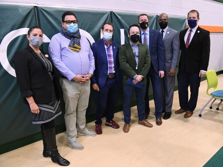 From left, Orleans Parish School Board Members Katherine Baudouin, Dr. J.C. Romeo and Carlos Zervigon; recipient Jay Weisman; Louisiana Superintendent of Education Dr. Cade Brumley; NOLA Public Schools Superintendent Dr. Henderson Lewis Jr.; and Orleans Parish School Board Member Olin Parker.