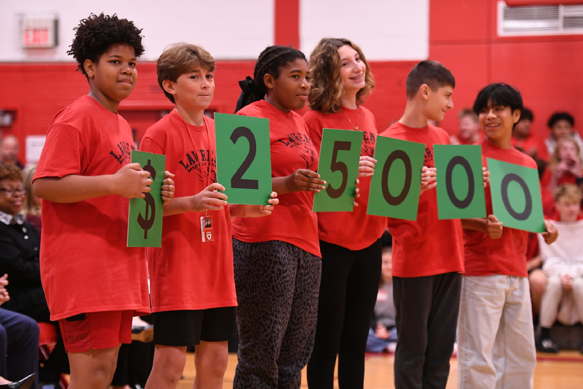 Lawrence Middle School | Lawrenceville, NJ | Oct 14, 2025How much is the cash prize for today's Milken Educator Award recipient? One digit at a time, students hold up cards representing the amount. That makes $25,000!