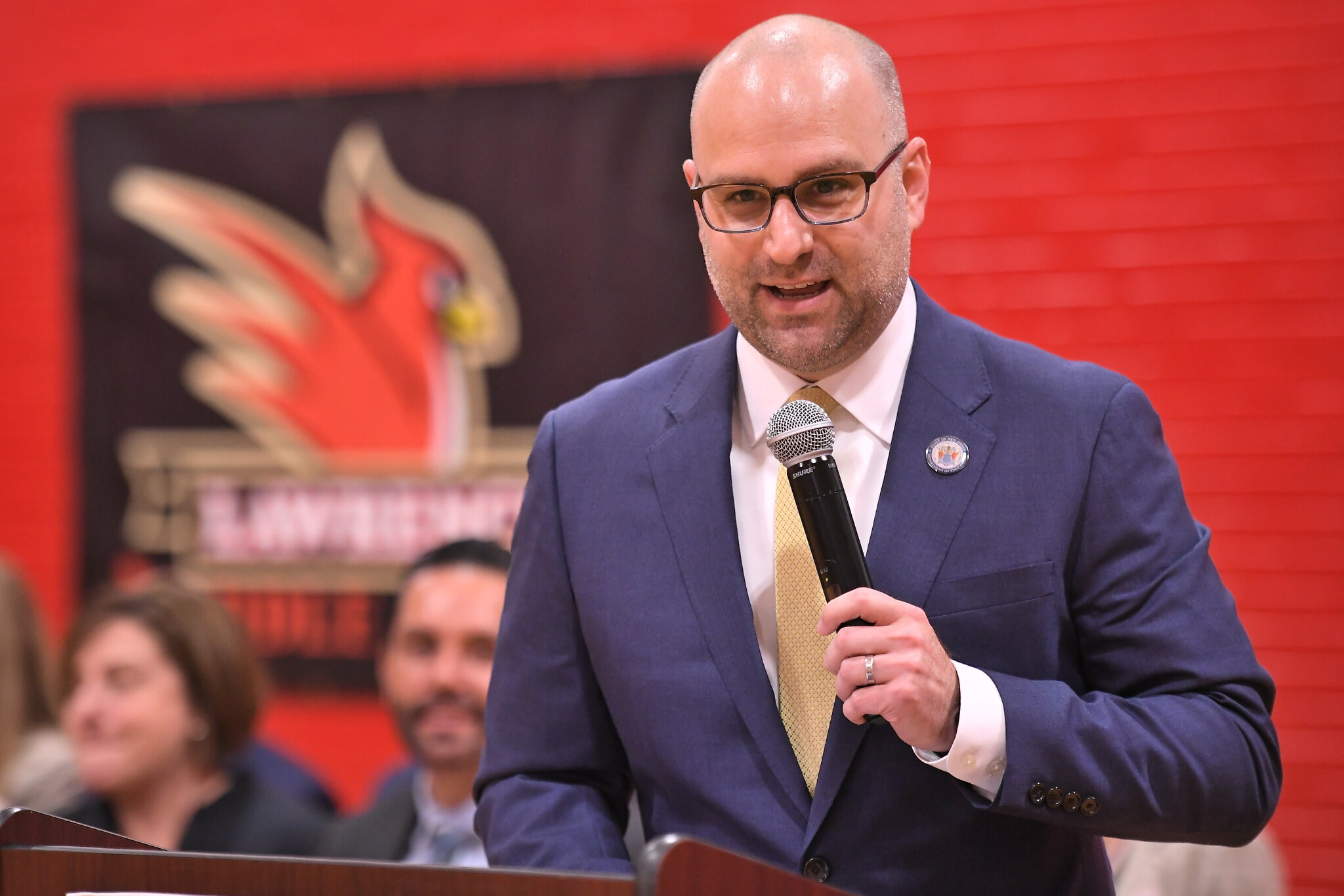 Lawrence Middle School | Lawrenceville, NJ | Oct 14, 2025New Jersey Commissioner of Education Kevin Dehmer is excited to be at Lawrence Middle School this morning. He welcomes everyone in attendance, introduces dignitaries, then introduces a very special guest who has come all the way from California.