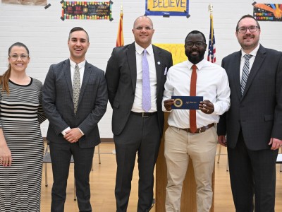 Clarendon Elementary School is welcoming Arizona Deputy Superintendent of Public Instruction Margaret Garcia Dugan for an important all-school assembly. But there's one more special guest about to take the microphone—and he's here to reveal a career-changing surprise for one educator! National Institute for Excellence in Teaching Chief Executive Officer Dr. Joshua Barnett, representing the Milken Family Foundation, surprises Principal Jeff Martin with Arizona’s sole 2024-25 Milken Educator Award and $25,000, making it a day Martin will always remember. Watch the surprise unfold in the photos below.