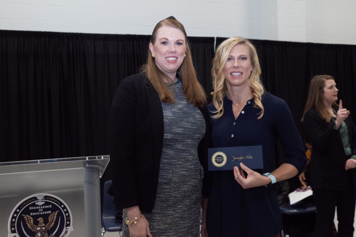 Pearl Upper Elementary | Pearl, MS | Jan 10, 2024Anna Thames, field representative for Senator Cindy Hyde-Smith, congratulates Jennifer Hite on her Milken Educator Award recognition.