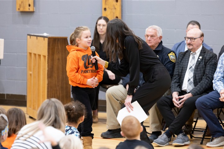 Lincoln Grade School | Washington, IL | Jan 17, 2025Milken Educator Awards Vice President Jennifer Fuller brings up a student to help explain the details of the Award.
