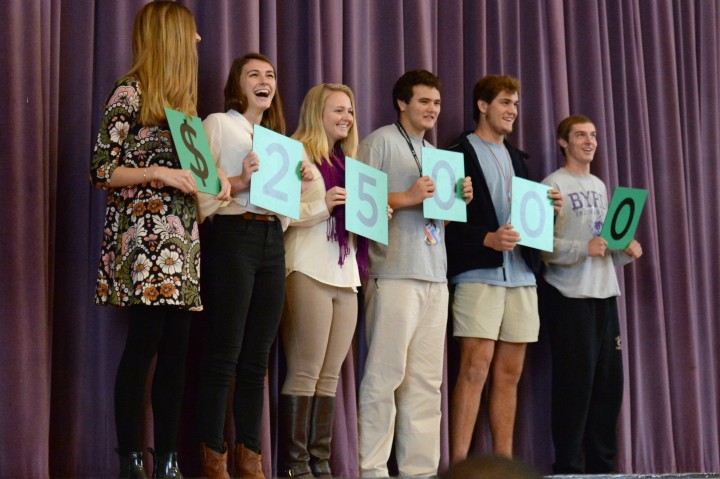 C.E. Byrd High School | Shreveport, LA | Oct 27, 2015Getting down to business: Student volunteers hold up cards to spell out the amount of the Milken Educator Award. The winning teacher will receive an unrestricted $25,000 cash prize.