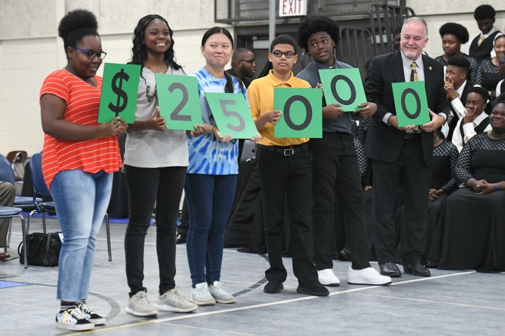 Valdosta Early College Academy | Valdosta, GA | Oct 10, 2019The Milken Educator Award also includes a cash prize. How much? One digit at a time, students hold up cards representing the amount of the Award. "Can we find one more zero?" asks Dr. Jane Foley, senior vice president of the Milken Educator Awards. Georgia State School Superintendent Richard Woods holds it up—and that brings the total to $25,000!