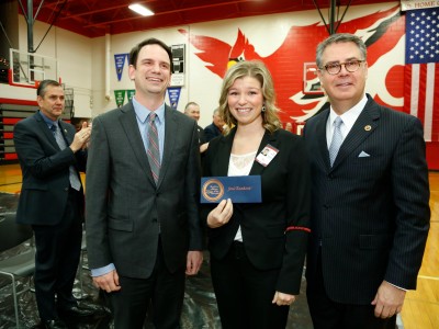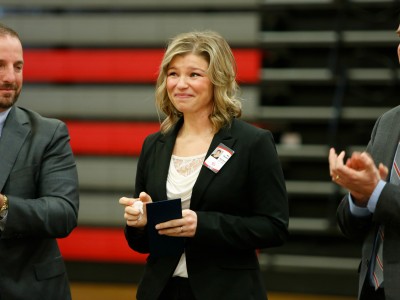 Central Decatur Junior-Senior High School | Leon, IA | Nov 29, 2017Milken Educator Award recipient Joni Readout talks with reporters at her surprise notification.