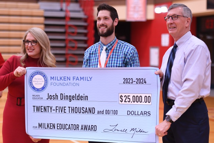 Plymouth High School | Plymouth, IN | Nov 09, 2023Indiana Representative Jack Jordan joins Secretary of Education Dr. Katie Jenner to congratulate Milken Educator Award recipient Josh Dingeldein.